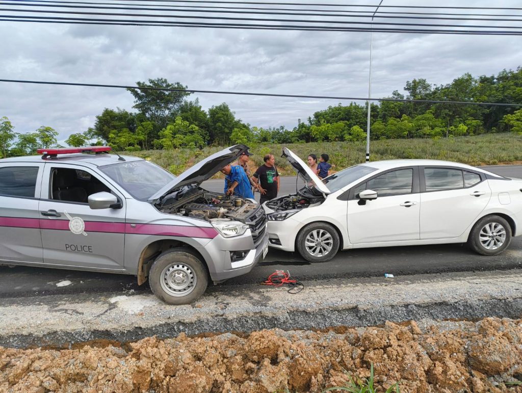 ด.ต.สำราญ เกินกระโทก ร้อยเวร 20 ว.4 รับแจ้งจาก 191 เหตุ ประชาชนขอความช่วยเหลือ แบตเตอรี่รถยนต์หมด สตาร์ทไม่ติดได้ดำเนินการช่วยเหลือพ่วงแบตเตอรี่จนรถสตาร์ทติดเดินทางต่อไปได้