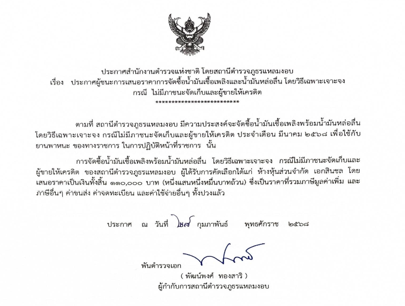ประกาศจัดซื้อจัดจ้าง มี.ค.68 15 มีนาคม 2568 โดย admin / ประกาศจัดซื้อจัดจ้าง สถานีตำรวจภูธรแหลมงอบ มีความประสงค์จะจัด ซื้อน้ำมันเชื้อเพลิงพร้อมน้ำมันหล่อลื่น โดยวิธีเฉพาะเจาะจง กรณีไม่มีภาชนะจัดเก็บและผู้ขายให้เครดิต ประจำเดือน มีนาคม 2568 เพื่อใช้กับยานพาหนะของทางราชการในการปฏิบัติหน้าที่ราชการ ประกาศจัดซื้อนำมันเชื้อเพลิง งบ ปป. มี.ค.68 (ดาวน์โหลดที่นี่ 1 ) ประกาศจัดซื้อนำมันเชื้อเพลิง งบ ปป. มี.ค.68 (ดาวน์โหลดที่นี่ 2 )