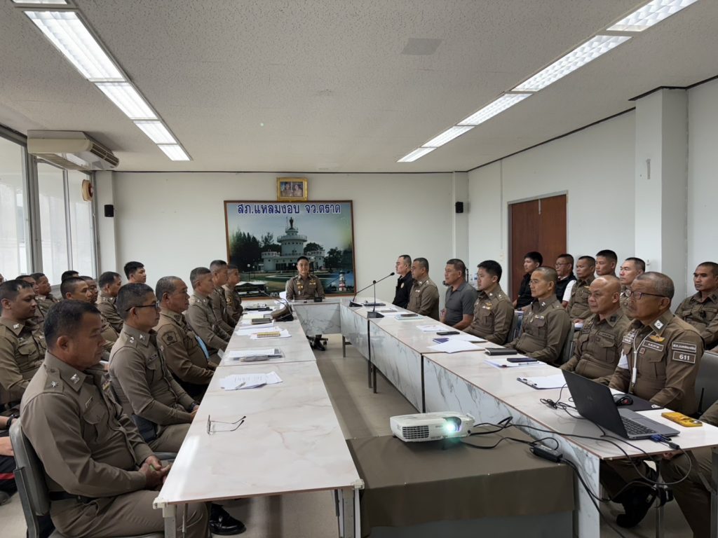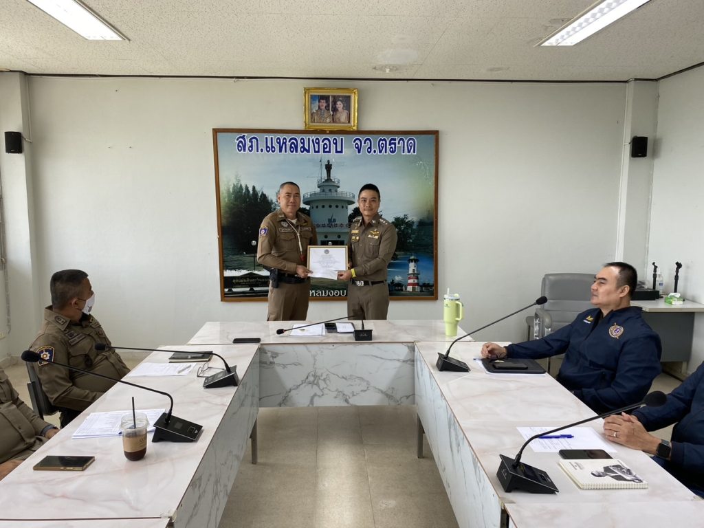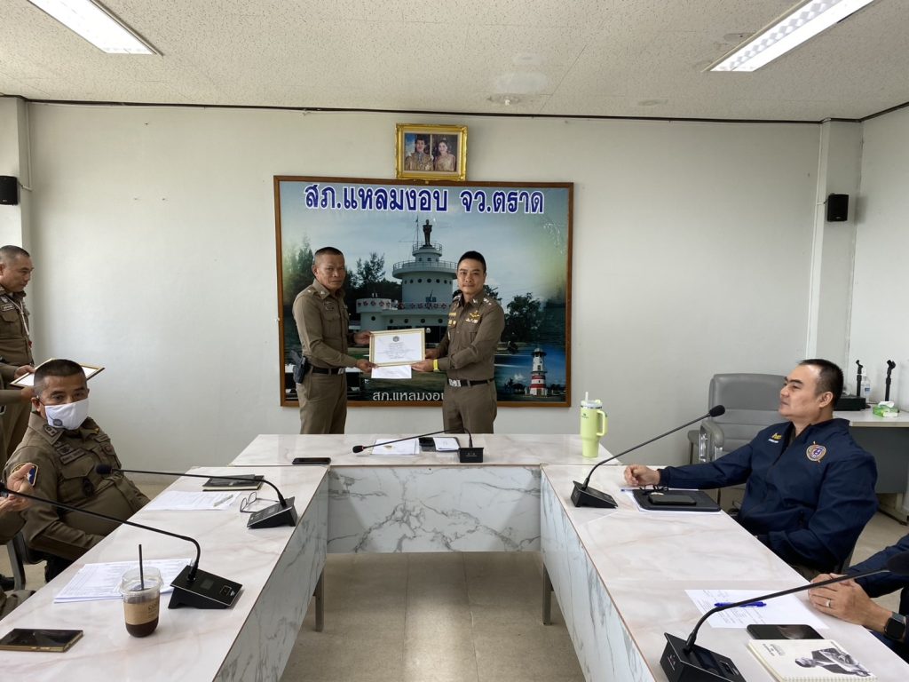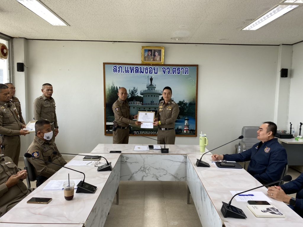 พ.ต.อ.กฤษณ์ มาสุข ผกก.สภ.แหลมงอบ ประชุมชี้แจงข้อราชการประจำเดือนสิงหาคม พร้อมมอบใบประกาศเกียรติคุณให้แก่ข้าราชการตำรวจที่ปฏิบัติหน้าที่ดีเด่น