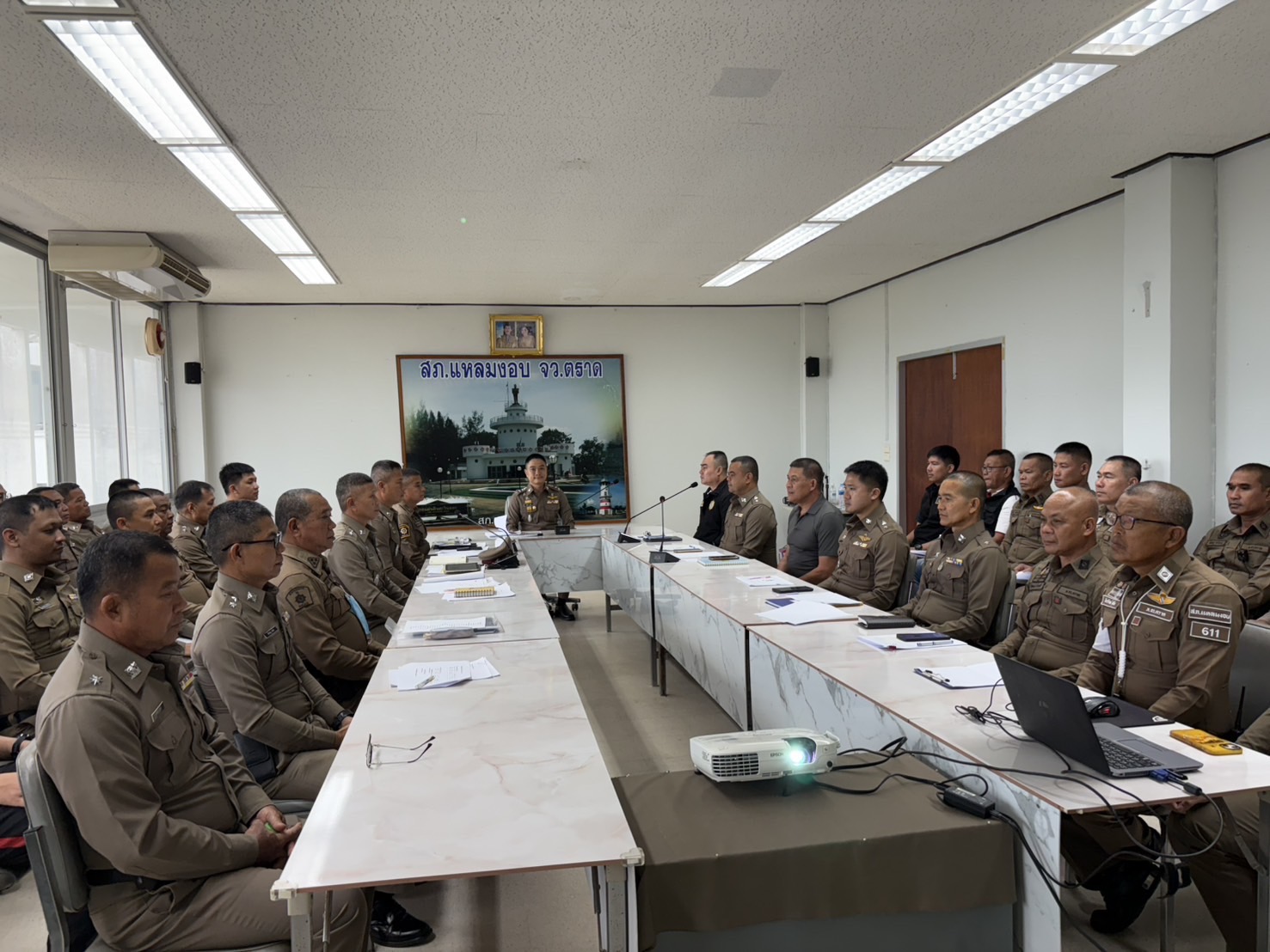 วันที่ 12 มีนาคม 2568 เวลา 10.00 น. พ.ต.อ.กฤษณ์ มาสุข ผกก.สภ.แหลมงอบ จัดให้มีการอบรมข้าราชการตำรว