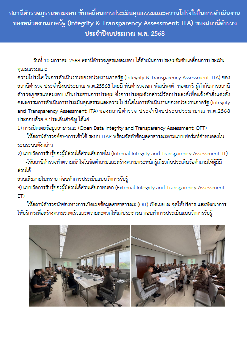 วันที่ 22 สิงหาคม 2568 พ.ต.อ.กฤษณ์ มาสุข ผกก.สภ.แหลมงอบ ประชุมชี้แจงข้อราชการประจำเดือนสิงหาคม พร้อม