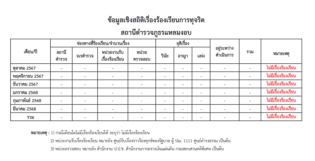 O17 ช่องทางการแจ้งเรื่องร้องเรียนการทุจริตและข้อมูลเชิงสถิติเรื่องร้องเรียนการทุจริต